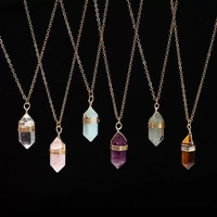 六角形円筒形クリスタルネックレス天然石ペンダントワイヤーラップストーンペンダントネックレス女性用メンズジュエリー
